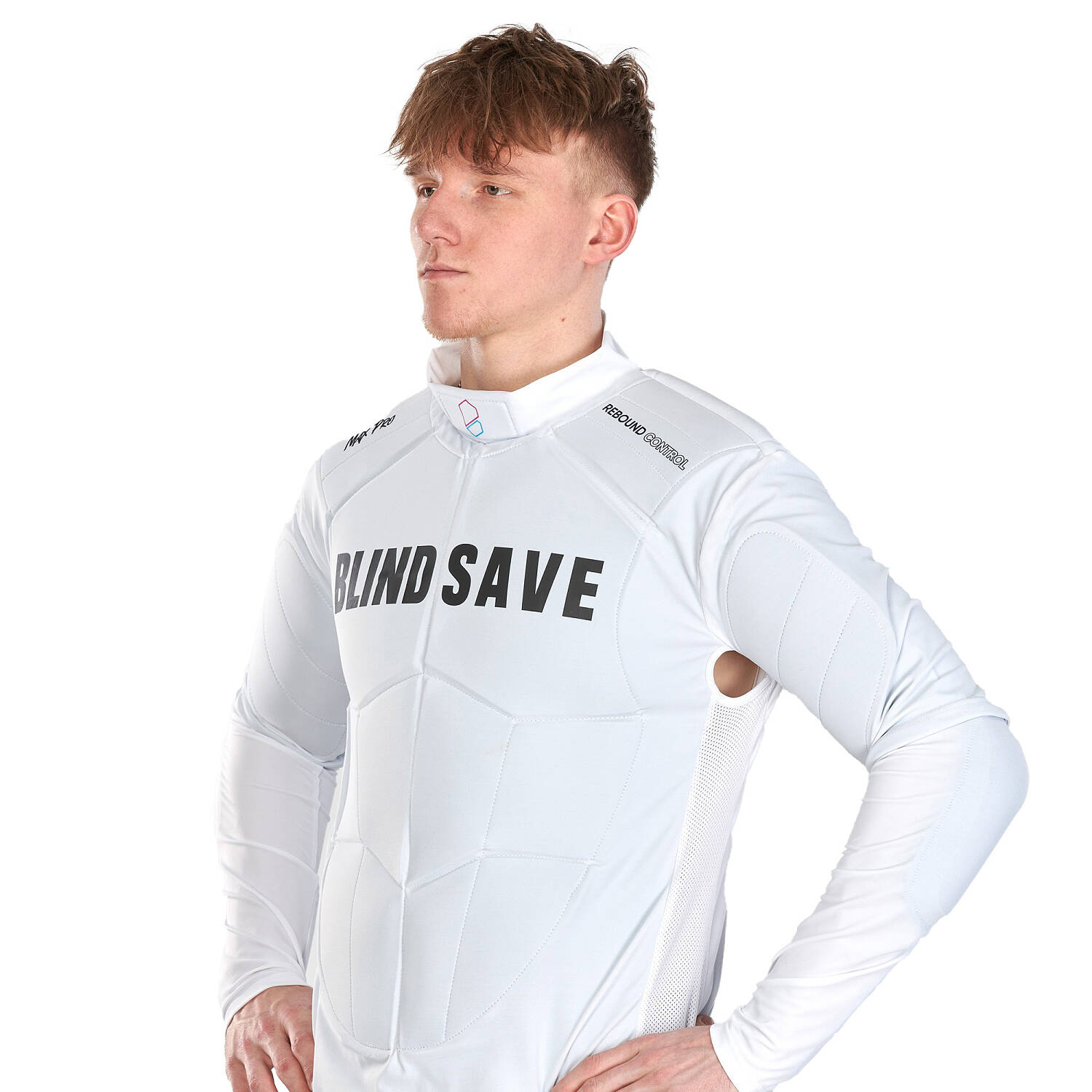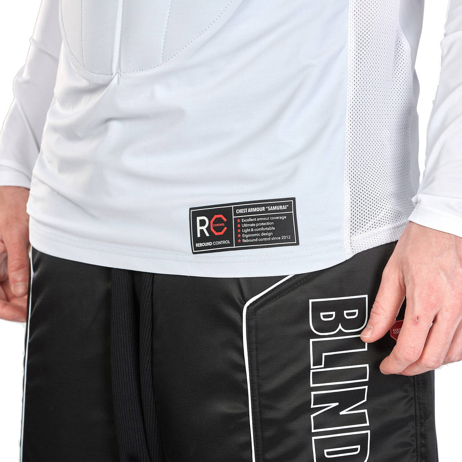 The new and innovative "Samurai" MAX PRO body protector features a new generation of double-layered rebound control technology for better ball control and superior protection. The padding is more flexible and adapts to the user's body as soon as it comes into contact with body heat. This armor has the option of a removable sleeve, which allows it to be used as a short-sleeved vest. However, the long-sleeved version has additional elbow and wrist protection.