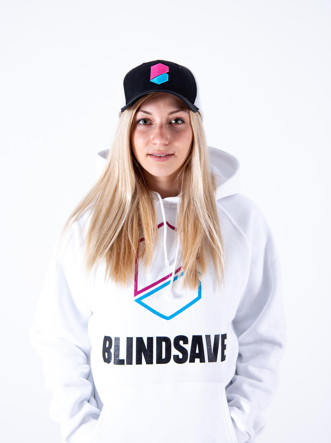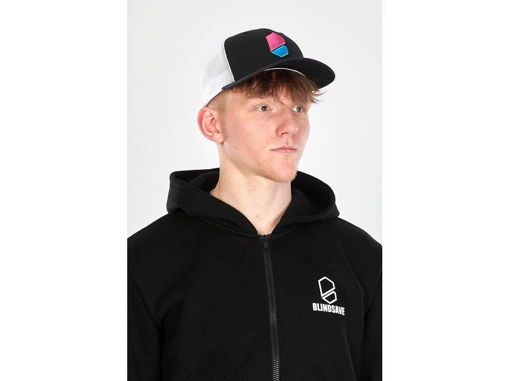Stylish Blindsave cap in black and gray with an embroidered Blindsave logo. Universal adjustable size. Detailed information