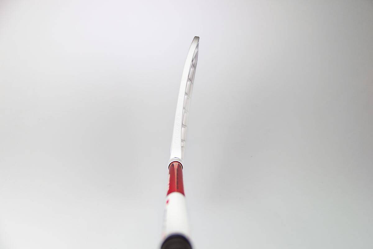 The backhand side of the blade is dominated by special reinforcement in the neck area in the form of hexagons arranged in a honeycomb pattern.
