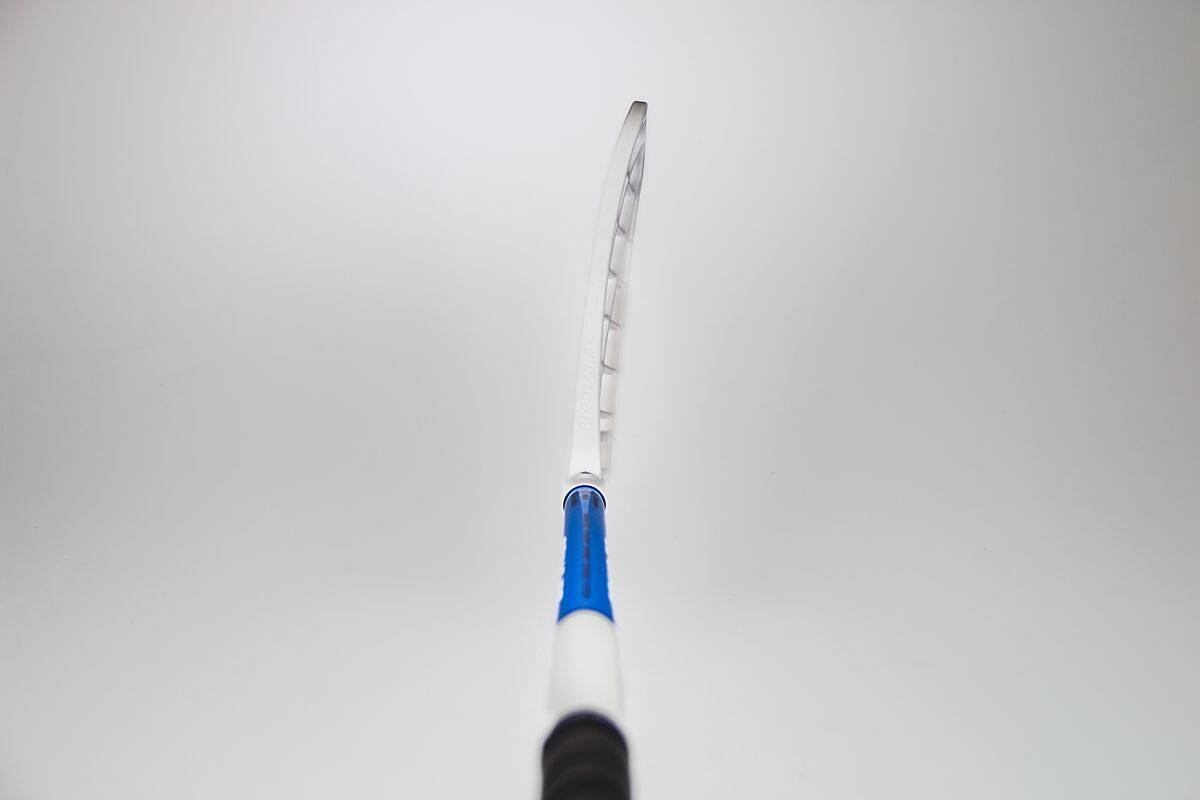 The backhand side of the blade is dominated by special reinforcement in the neck area in the form of hexagons arranged in a honeycomb pattern.