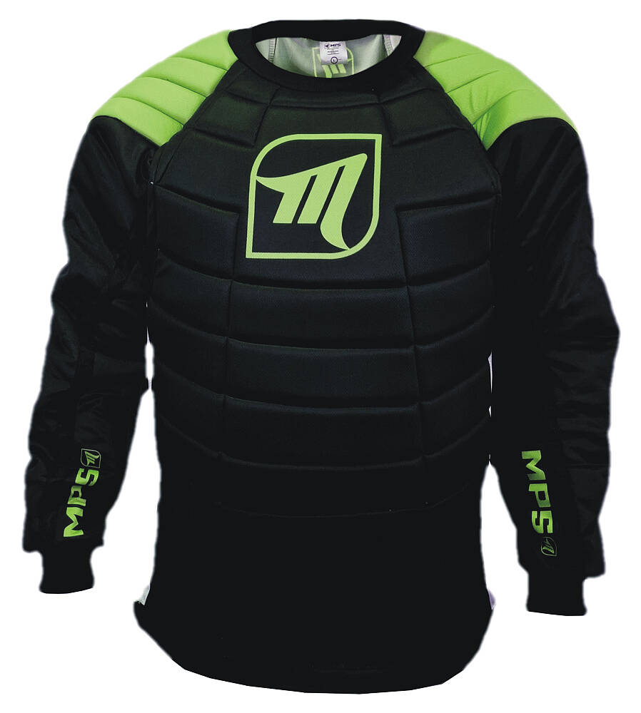 MPS Elite Goalkeeper Floorball Jersey Black/Green A two-in-one combination, the jersey is also connected to a vest, designed primarily for junior and amateur floorball goalkeepers.